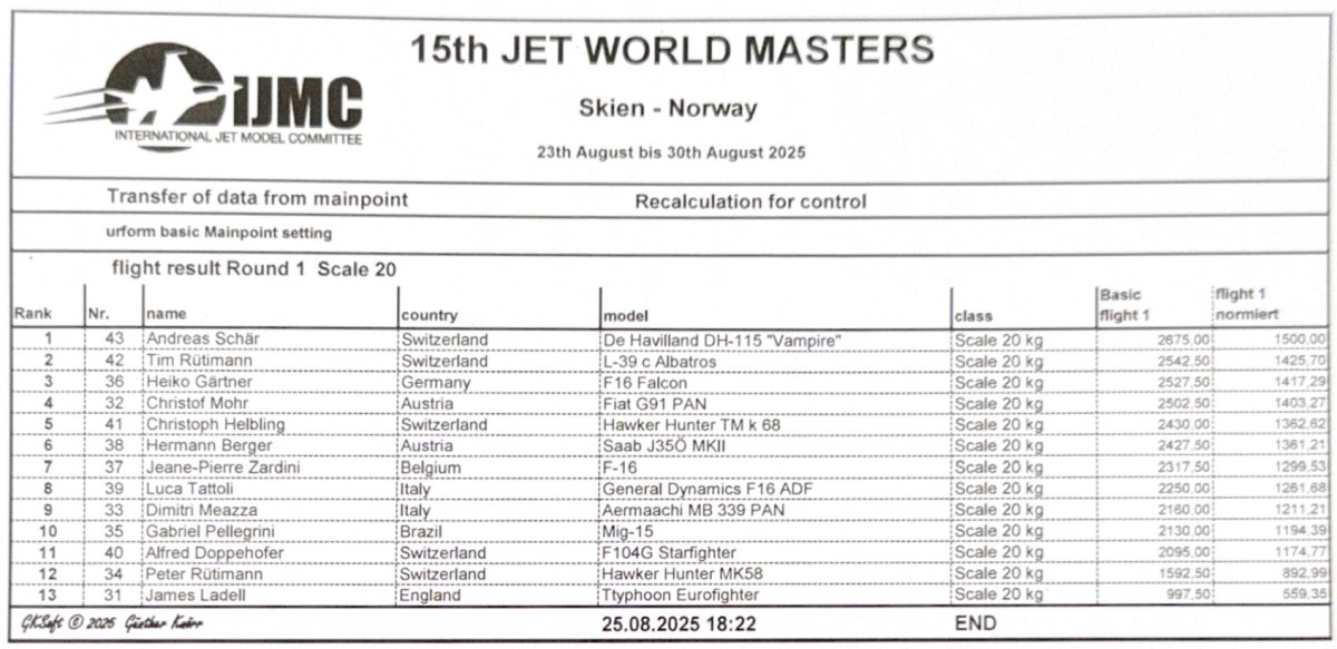 Monday, first day of competition. We made round 1+2 for the Basic and Turboprop classes and round 1 for the Scale 15kg and Scale 20kg classes.