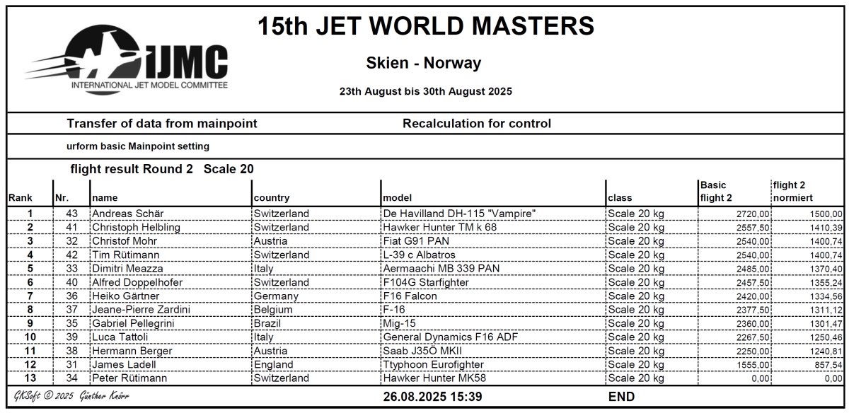 Today on Tuesday we could terminate the second flight round for all, as well as for the Giant class. For Wednesday and coming days the weather forecast is saying nasty weather conditions so therefore we speed up the second flight to get terminated.
